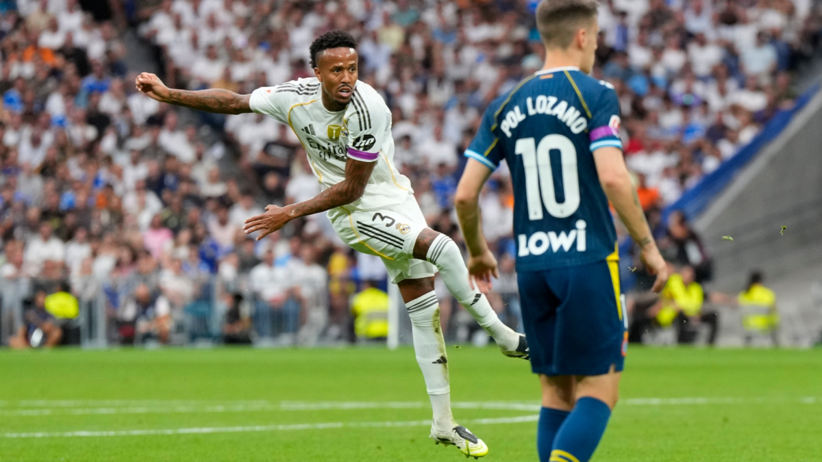 Por si fuera poco, Militao coronó su increíble resurgir con un golazo ante el Espanyol, con el que adelantó al Madrid en el marcador y puso en pie al Bernabéu, que coreó el nombre del central brasileño ante la obra de arte que acababa de firmar. Con el Madrid sufriendo para encontrar huecos por los que hacer daño a la defensa del Espanyol y en una de las numerosas circulaciones de balón infructuosas a pocos metros de la frontal del área, Militao agarró el balón, se perfiló a portería y se sacó un derechazo desde 31 metros que sorprendió a Dmitrovic a los 22 minutos de partido. El ‘misil’ se fue abriendo, alejándose del alcance del meta del Espanyol, y terminó colándose por la escuadra.