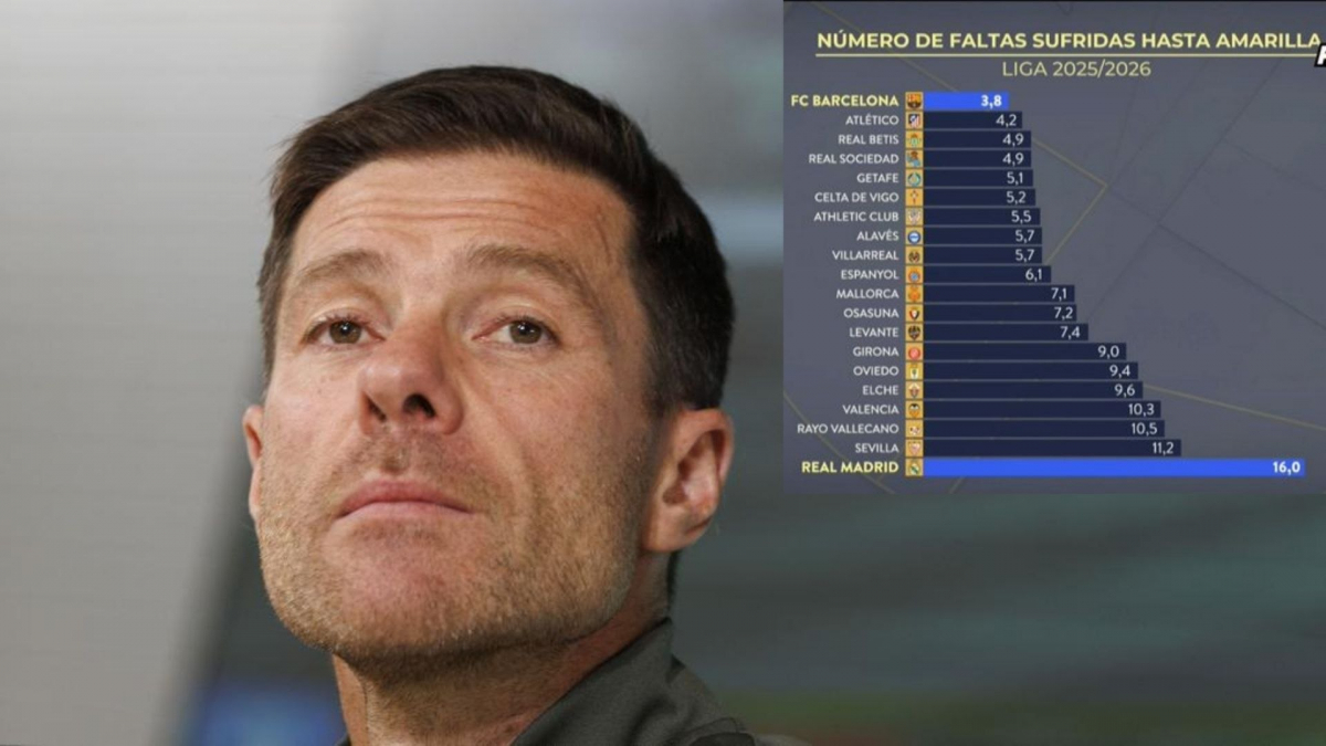 خمس جولات من الدوري كانت كافية لرسم اتجاه غير مريح بالنسبة لريال مدريد. قناة النادي، ريال مدريد تي في، أوضحت ذلك من خلال رسم بياني بسيط لكنه مدمر: يُشهر الإنذار الأصفر في وجه خصوم فريق تشابي ألونسو بعد كل 16 خطأ يرتكبونه. هذا هو المعدل الأسوأ في البطولة. في المقابل، يحتاج ريال مدريد فقط إلى ارتكاب 6.6 أخطاء لكي يتلقى بطاقة صفراء. بعبارة أخرى: من السهل جدًا أن يحصل ريال مدريد على بطاقة، بينما يتمتع خصومه بهامش أكبر بكثير.