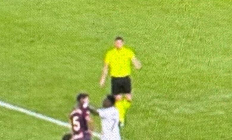 خلال بث المباراة، لم يكن يبدو أن “الاحتكاك” بين اللاعبين سيأخذ أبعادًا أكبر. هذه هي اللقطة التي يشتكي منها إلخيزابال. في الصورة يمكن رؤية فينيسيوس وهو يضع يده على وجه لاعب ليفانتي، وذلك أثناء ركلة الجزاء التي كان سيقوم بتنفيذها مبابي.