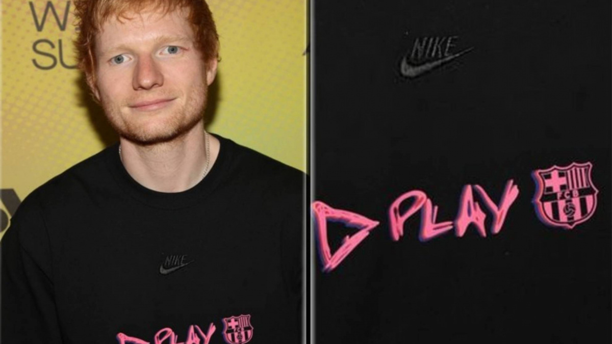 انتشرت بالفعل على وسائل التواصل الاجتماعي صورة لإد شيران وهو يرتدي قميصاً من نايكي يحمل شعار “بلاي” وشعار نادي برشلونة.