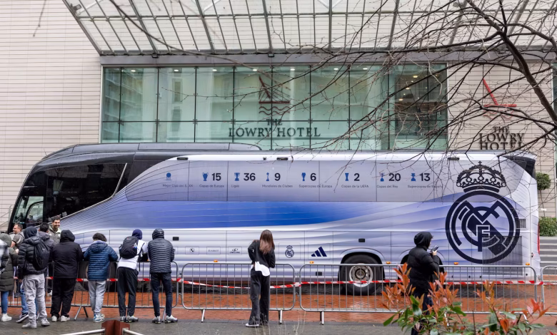 وصلت بعثة ريال مدريد إلى مانشستر استعدادًا للمواجهة المرتقبة أمام مانشستر سيتي، واختار الفريق الإقامة مجددًا في فندق لوري، الذي أصبح في الفترة الأخيرة مقرًا معتادًا له خلال زياراته إلى المدينة الإنجليزية.