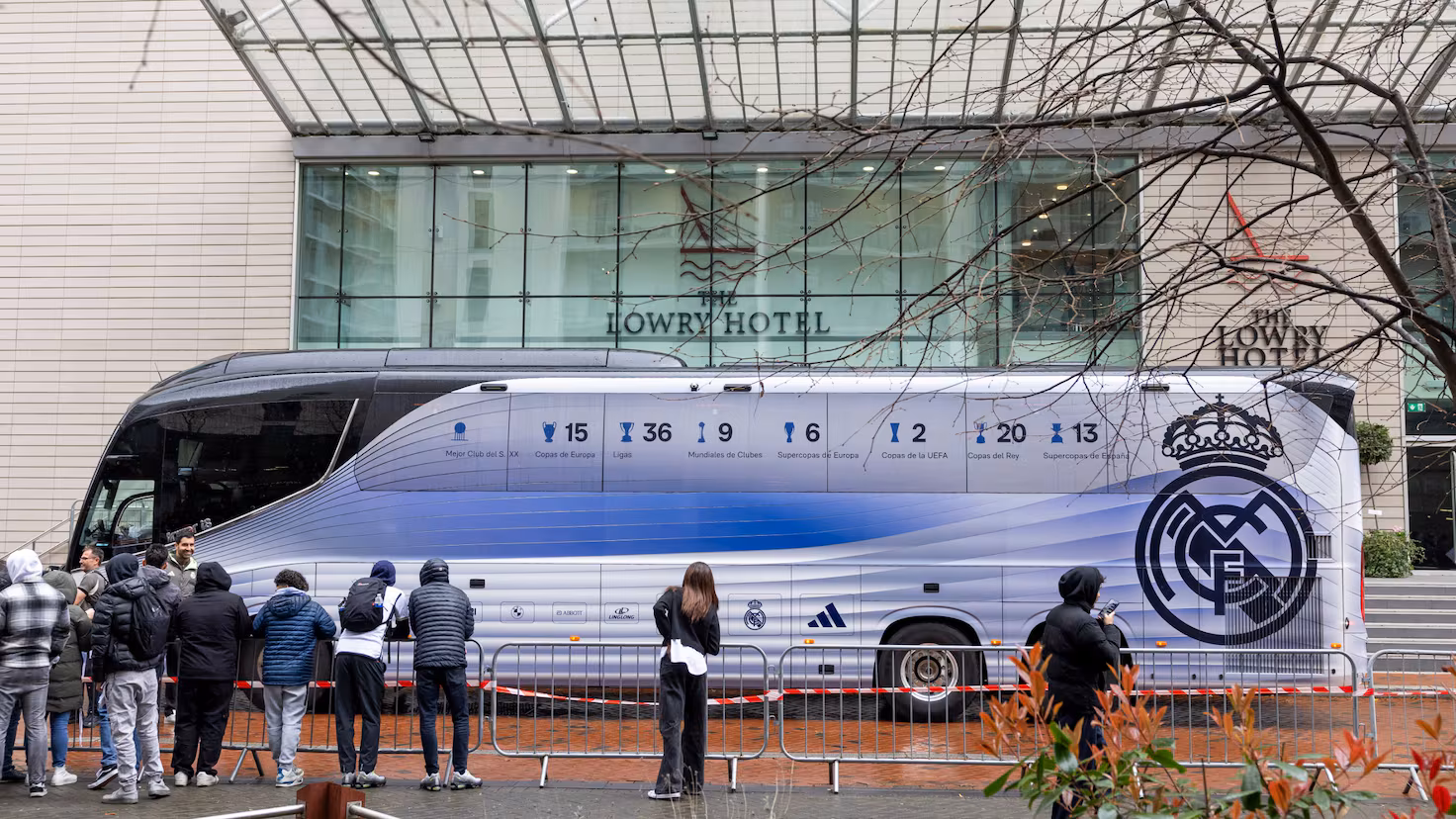 وصلت بعثة ريال مدريد إلى مانشستر استعدادًا للمواجهة المرتقبة أمام مانشستر سيتي، واختار الفريق الإقامة مجددًا في فندق لوري، الذي أصبح في الفترة الأخيرة مقرًا معتادًا له خلال زياراته إلى المدينة الإنجليزية.