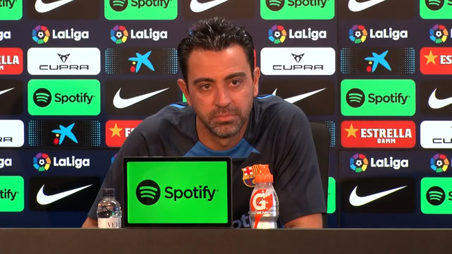 ظهر تشافي هيرنانديز اليوم السبت في المؤتمر الصحفي التحضيري لمباراة برشلونة وريال سوسيداد التي ستقام غداً على ملعب أنويتا في إطار مباريات الجولة الثانية من منافسات الدوري الاسباني الممتاز موسم 2022/2023.