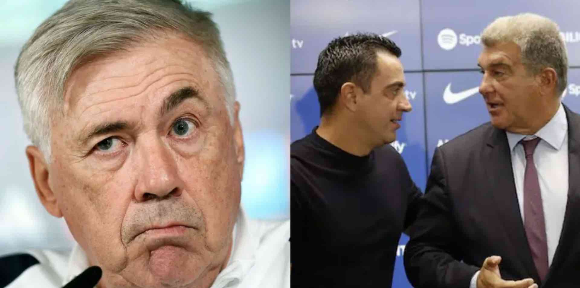 رد كارلو أنشيلوتي المدير الفني لنادي ريال مدريد الاسباني على تصريحات خوان لابورتا، رئيس نادي برشلونة، التي هاجم فيها التحكيم الاسباني ووصف الفار بأن قراراته تخدم ريال مدريد فقط.