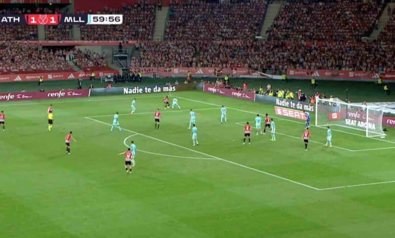 وفي إحدى لقطات المباراة، قام نيكو ويليامز بمراوغة مُذهلة داخل منطقة جزاء مايوركا تخطى من خلالها اثنين من المدافعين.