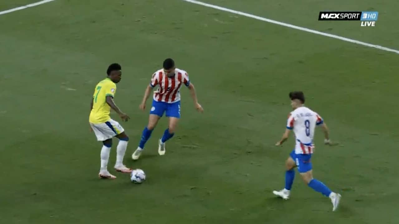 تحولت مباراة البرازيل وباراجواي إلى ساحة حرب بعدما استعرض فينيسيوس جونيور مهاراته بطريقة مستفزة وراوغ اثنين من اللاعبين بمهارة خرافية.