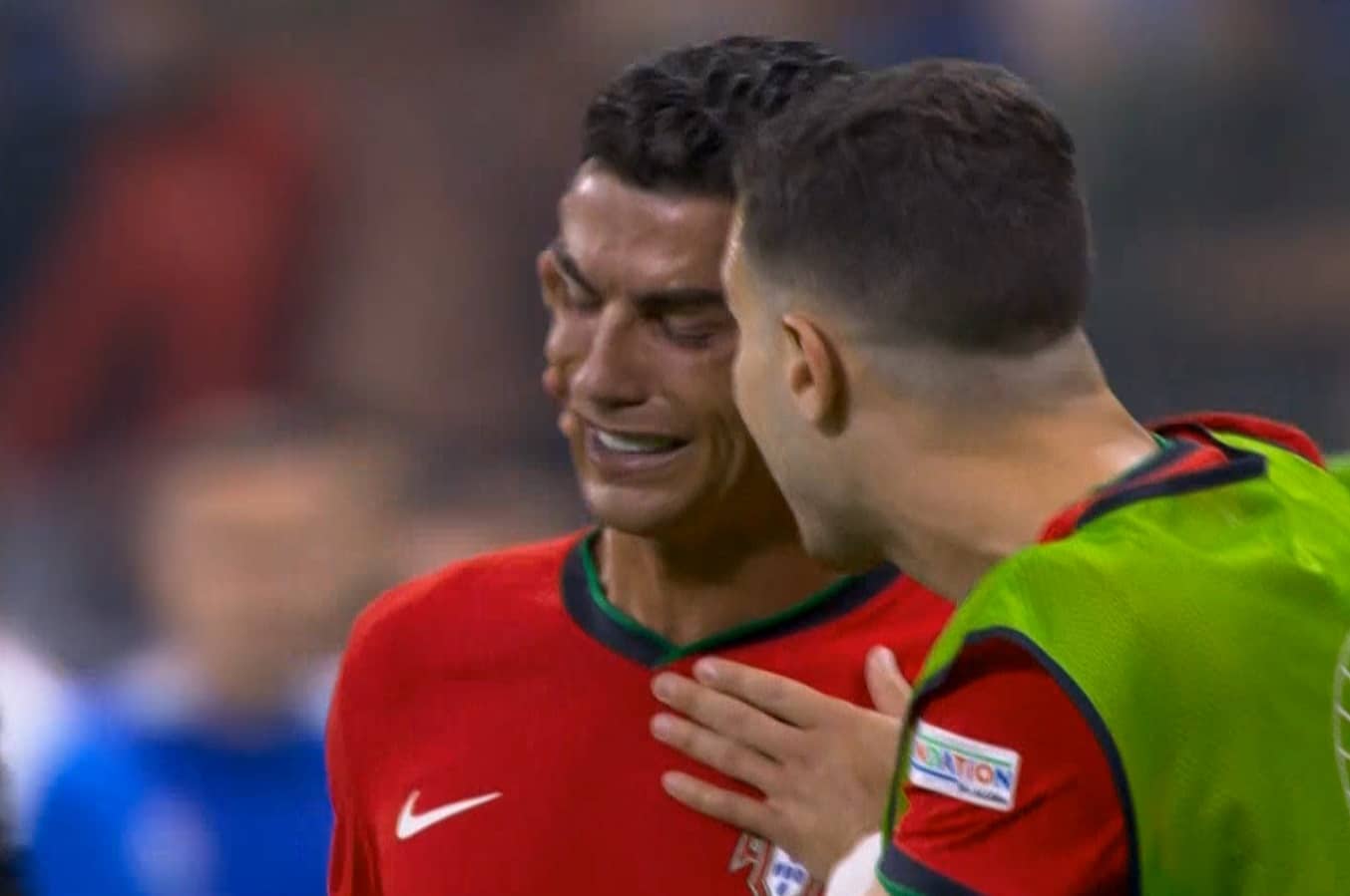 انهمر رونالدو بعدها في البكاء وشوهدت والدته وهي تبكي أيضًا في المدرجات.