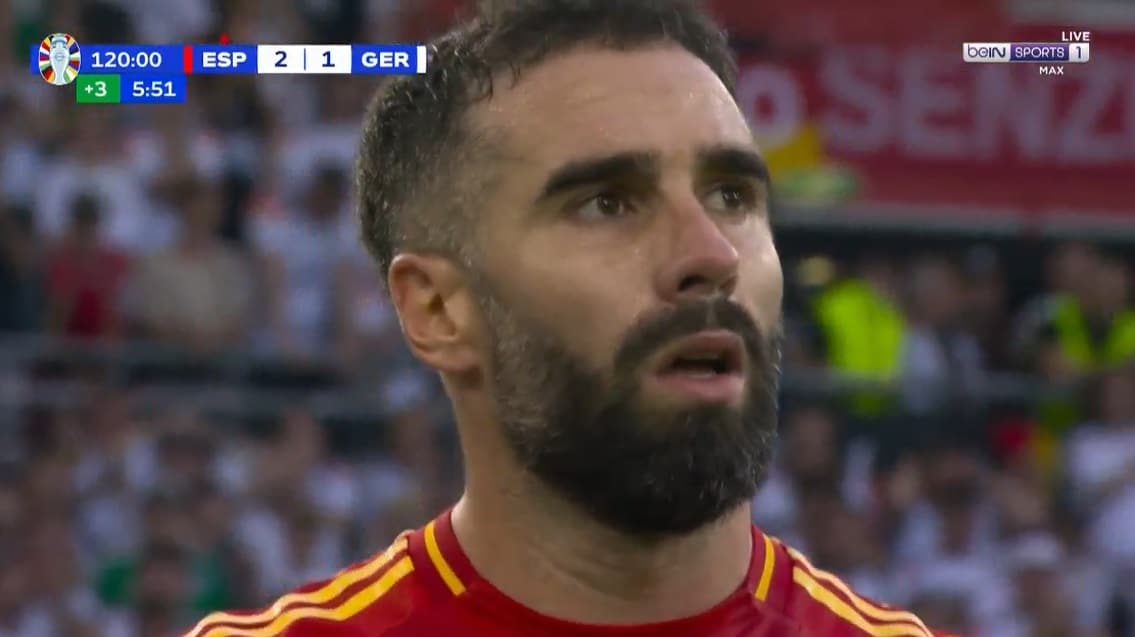 ضحى داني كارفاخال بنفسه عندما عرقل جمال موسيالا في الثواني الأخيرة من مباراة اسبانيا والمانيا عندما كنت تشير النتيجة لتقدم الماتادور 2-1.