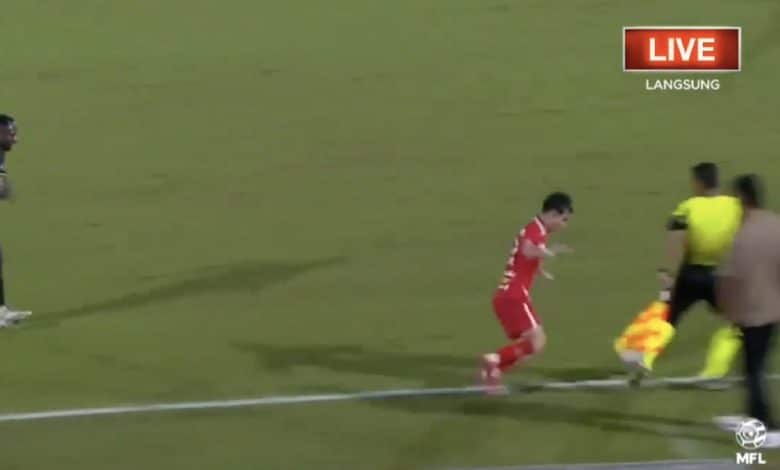 انتشرت لقطة كوميدية وهزلية من الدوري الماليزي تُظهر حامل الراية وهو يعطل هجمة مرتدة واعدة لأحد الفريقين بطريقة غريبة أثارت سخرية رواد مواقع التواصل الاجتماعي.