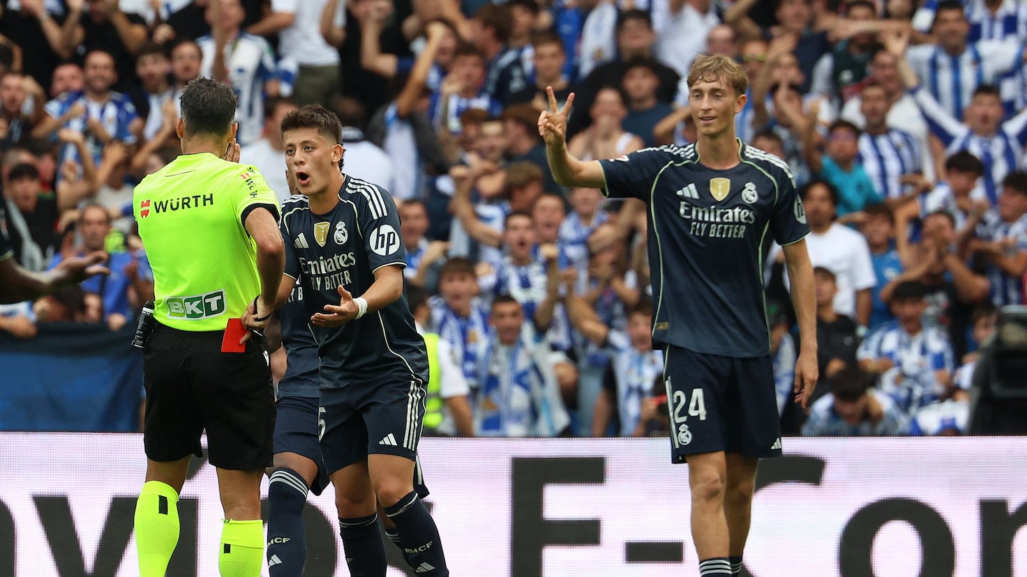تصاعد الغضب في ريال مدريد، الذي تجسد في الإعلان عن التوجه إلى الفيفا لرفع شكاواه التحكيمية، إلى درجة أعلى مع طرد هويخسن. فقد تلقى قلب الدفاع بطاقة حمراء مباشرة في لقطة اعتبرها الحكم خيل مانزانو فرصة واضحة لتسجيل هدف. رغم أن مصادر تحدثت إليها صحيفة آس تعتبر أن ذلك كان خطأ وكان ينبغي إشهار البطاقة الصفراء فقط.