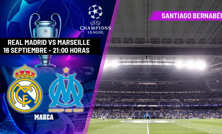 المباراة الخاصة بالجولة الأولى من مرحلة المجموعات لدوري أبطال أوروبا بين ريال مدريد وأولمبيك مارسيليا ستقام يوم الثلاثاء، 16 سبتمبر، في الساعة التاسعة مساءً، على ملعب سانتياغو برنابيو.